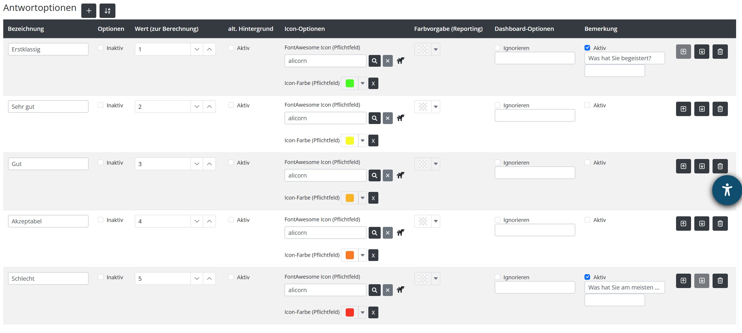 Matrixfrage mit indiv. Icons und Farben